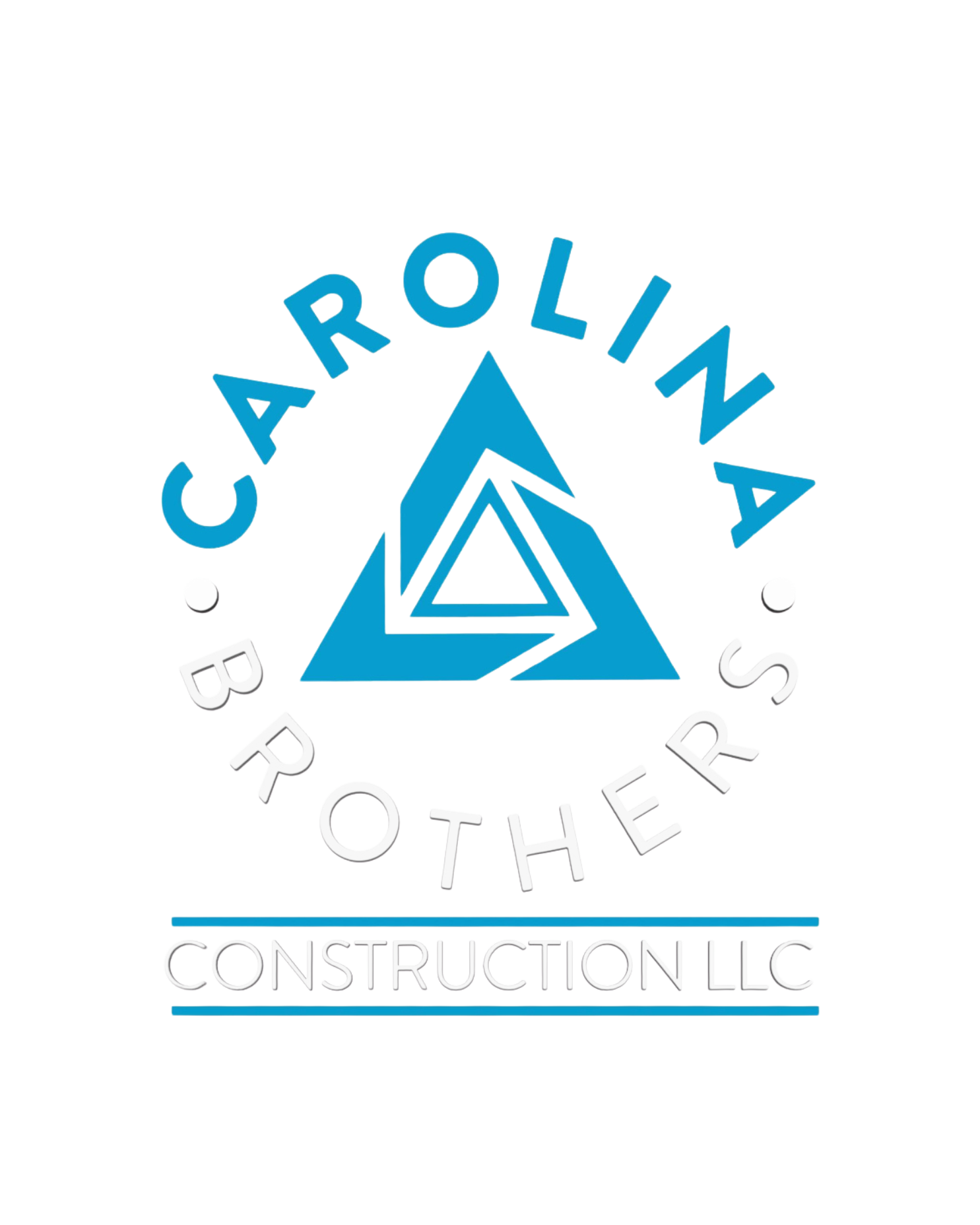 Logo for Carallina Brothers Construction LLC with a blue triangle and inside triangles, surrounded by the company name in blue and black.